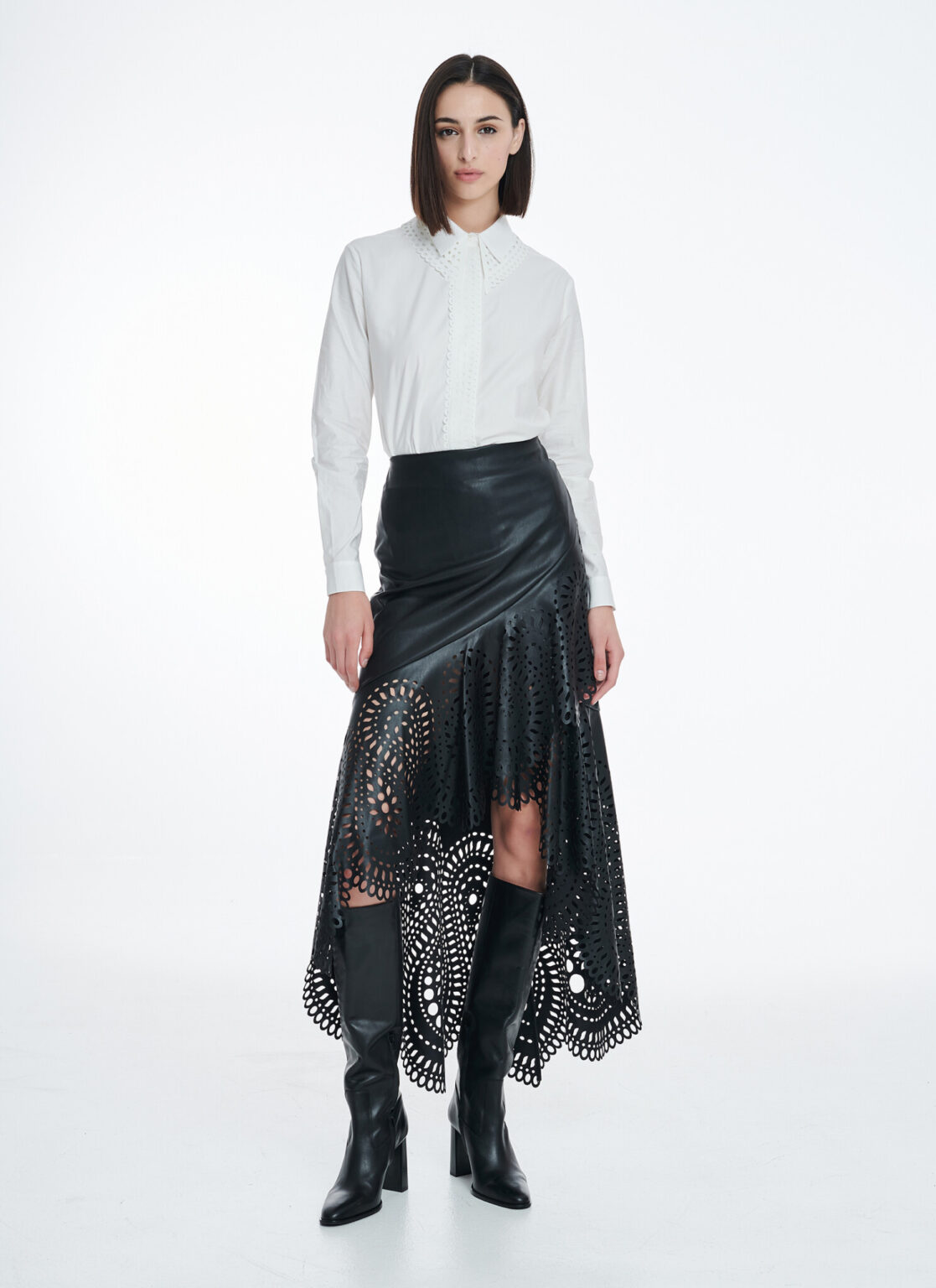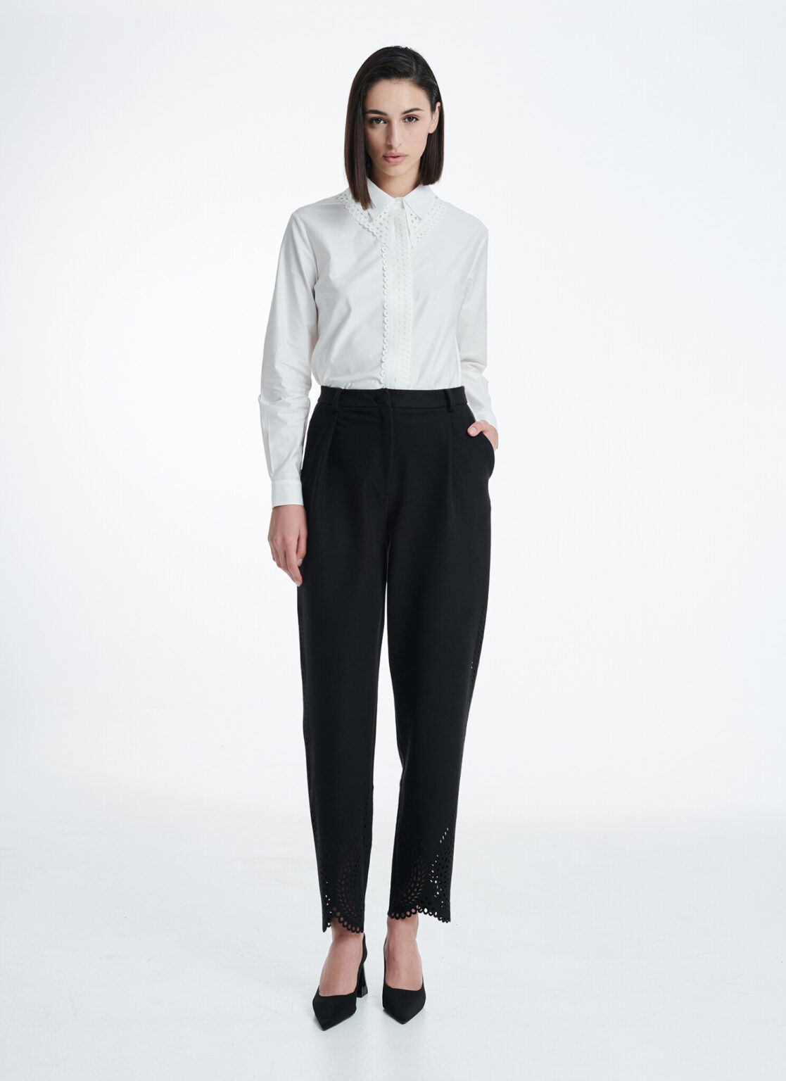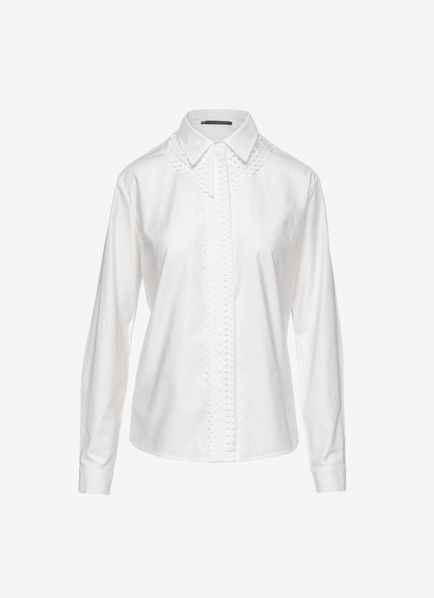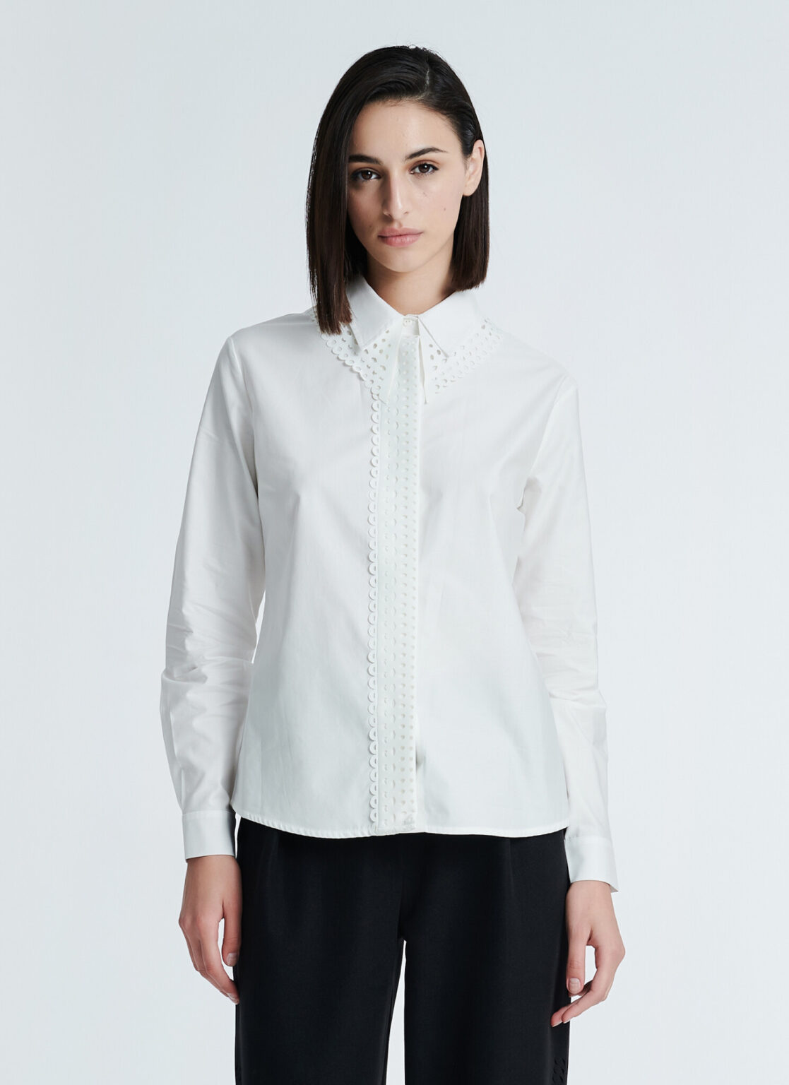 Κομμένο από δροσερή βαμβακερή ποπλίνα αυτό το πουκάμισο έχει ελαφρώς φαρδιά εφαρμογή και γιακά και πατιλέτα με laser-cut λεπτομέρειες.
