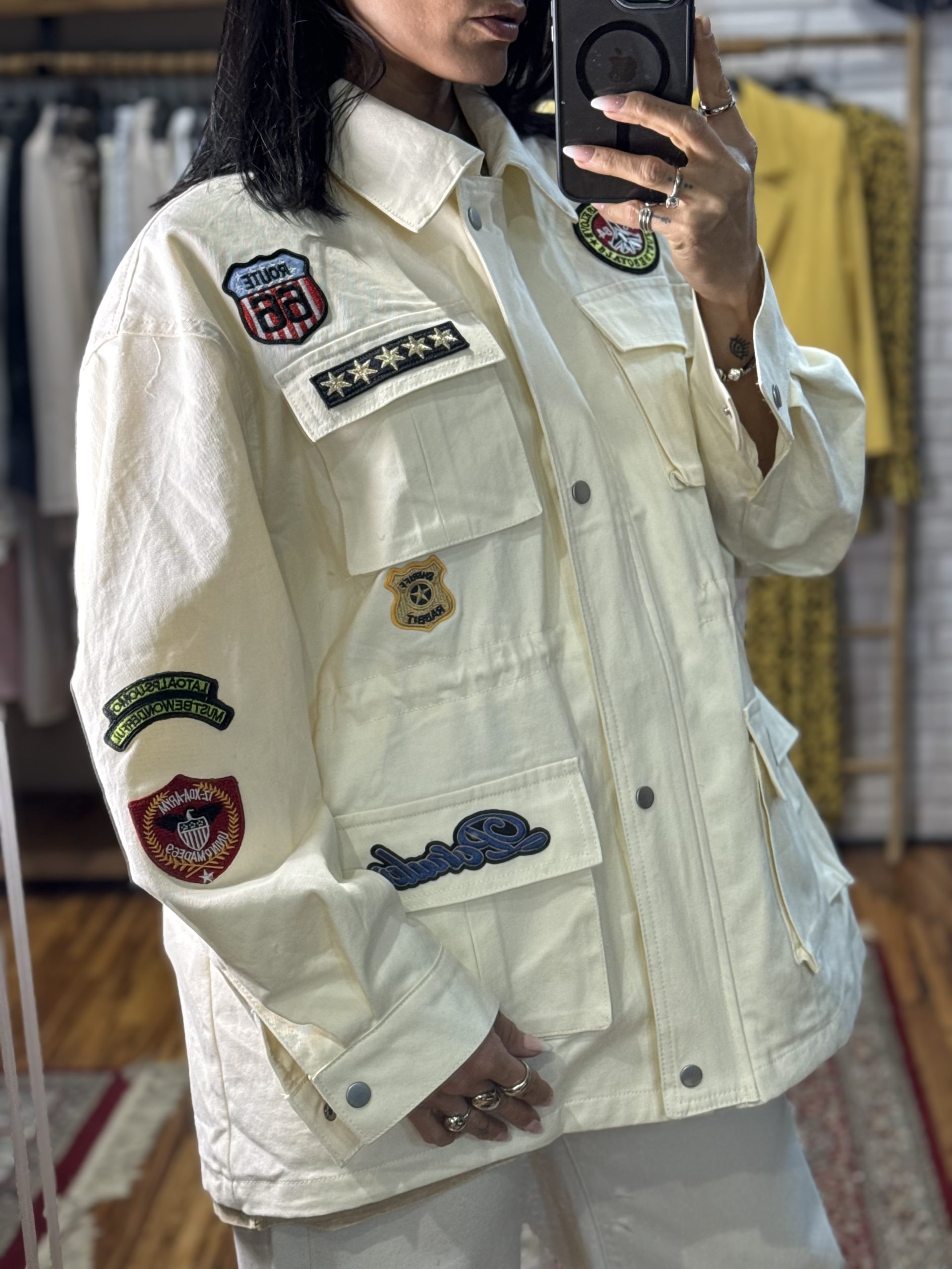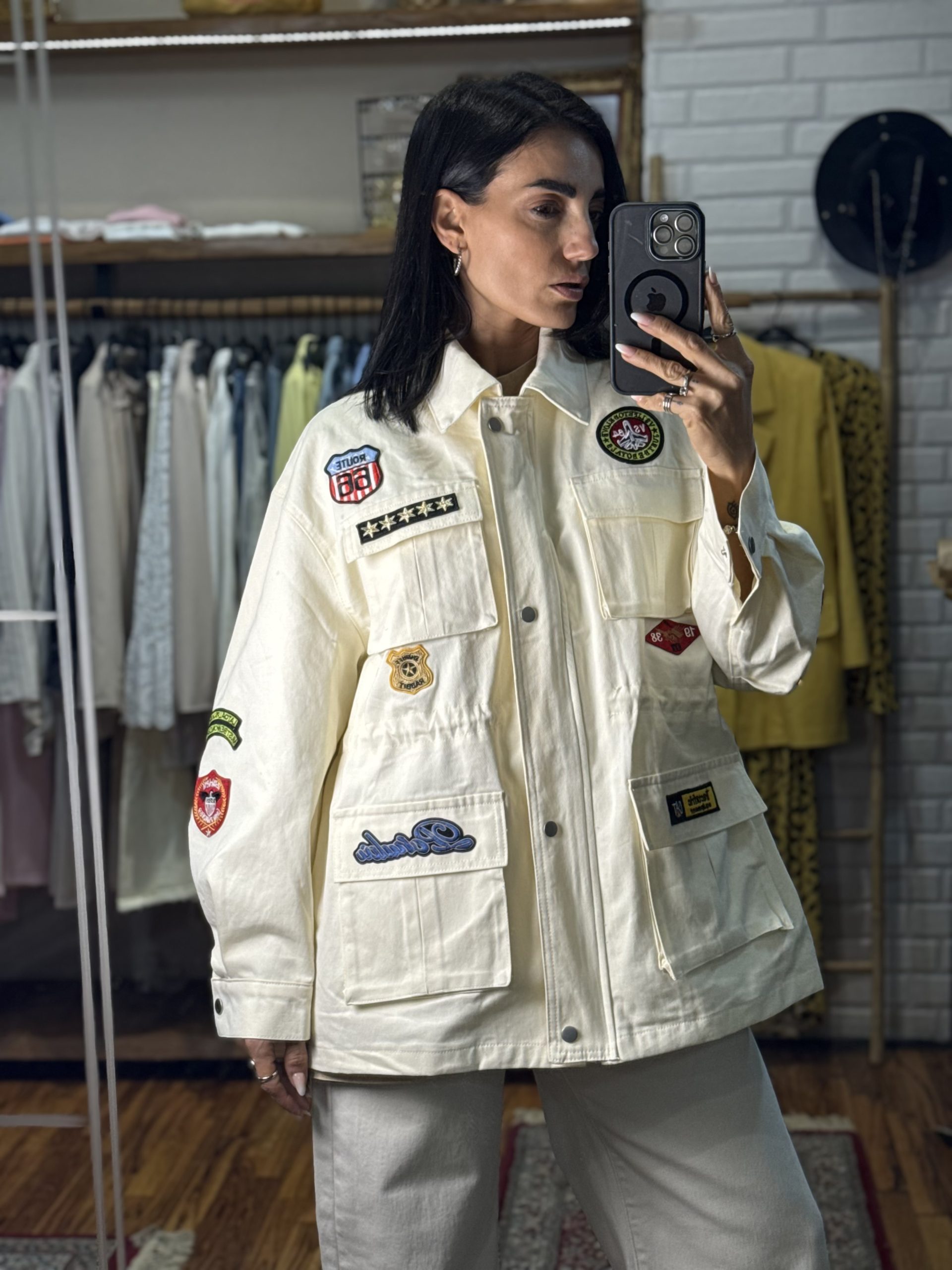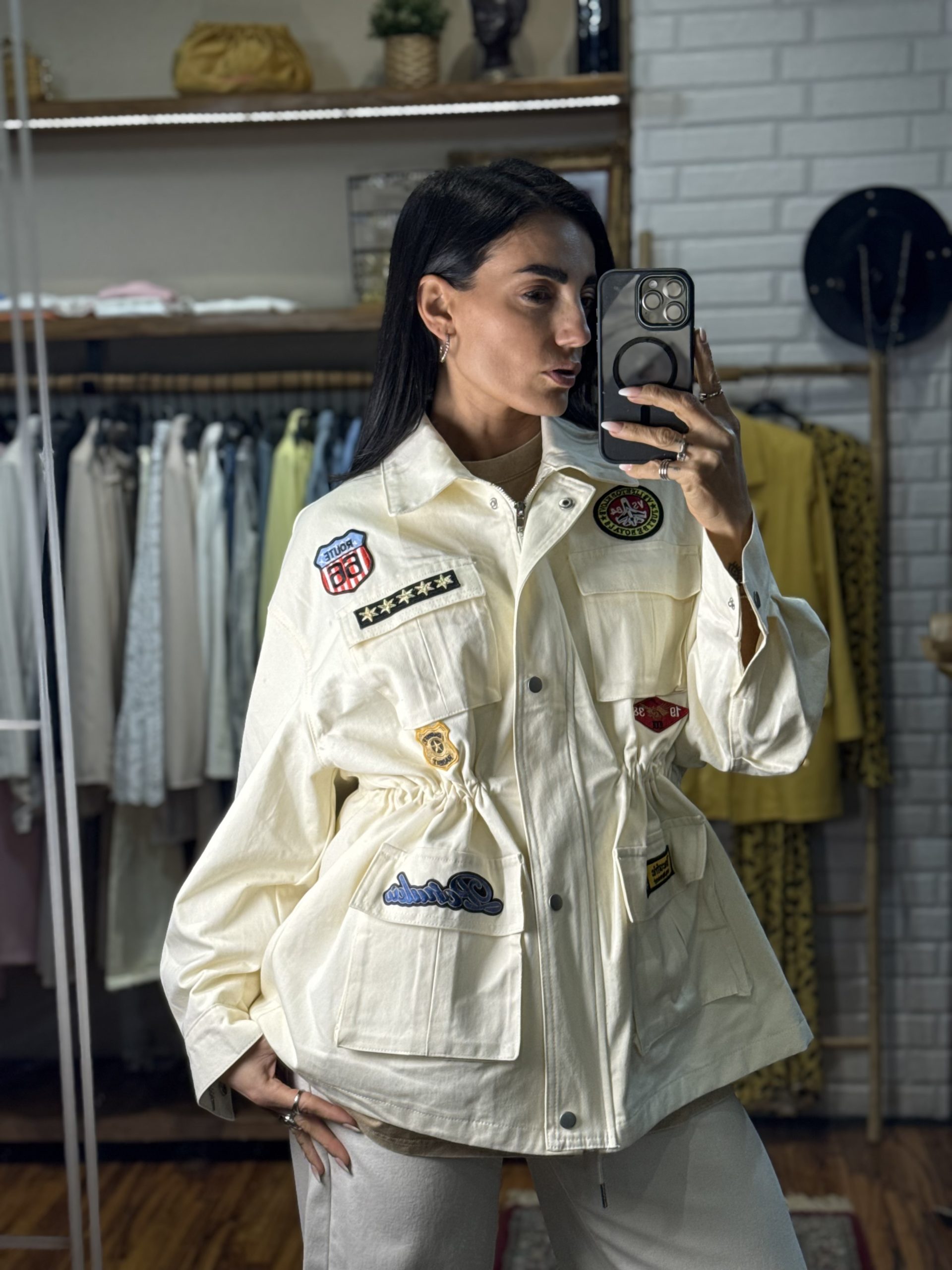 Τζάκετ με λάστιχο στη μέση και στάμπες στο μπροστινό μέρος